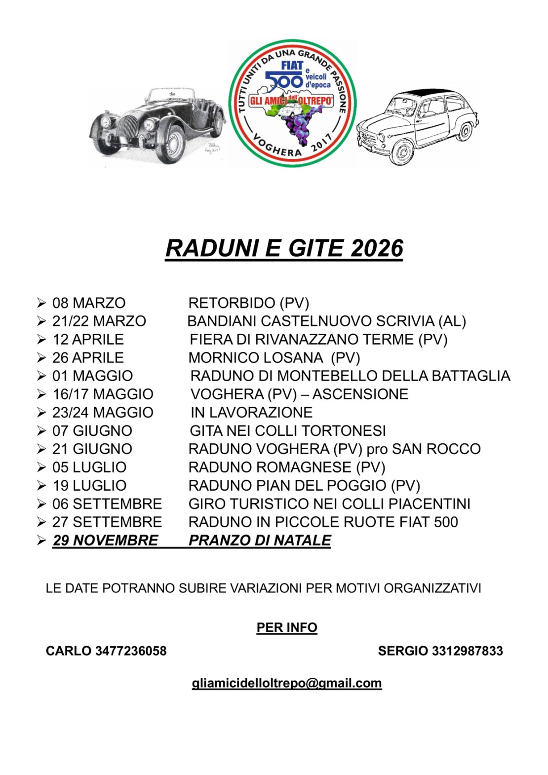 RADUNI ED EVENTI 2025 - Associazione " Gli Amici dell'Oltrepò"